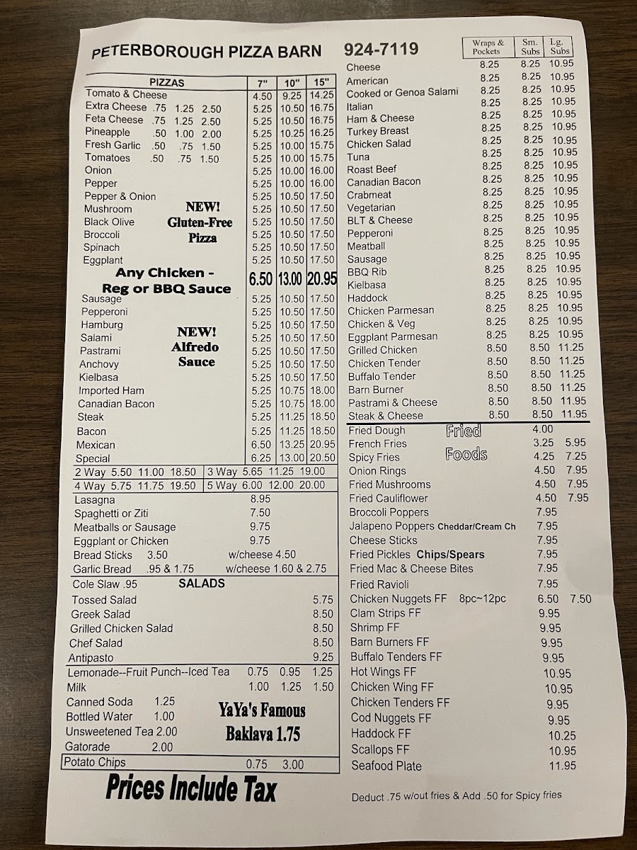 Welcome to Peterborough Pizza Barn, a gem tucked away at 71 Jaffrey Rd, Peterborough, NH. Known for its warm atmosphere and friendly service, this delightful eatery specializes in a varied menu that caters to all tastes. With fried dinners, including chicken nuggets and fried shrimp, each priced around $8.50, and heartier options like seafood plates at $9.95, you’ll find something for everyone.